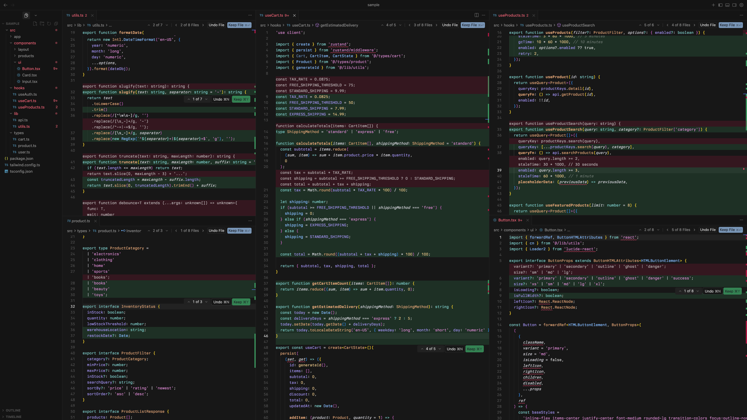 My hypothesis is the benefit of an inline UI directly in the files that have changed is that it would be easier to put the changes into context of the rest of the files. The UI for this is tricky, as it involves re-rendering or overlaying the semantic labels somehow. However, the inline method still seems to have the limitation that we can only see as many files as we can open -- making it harder to connect changes across files.